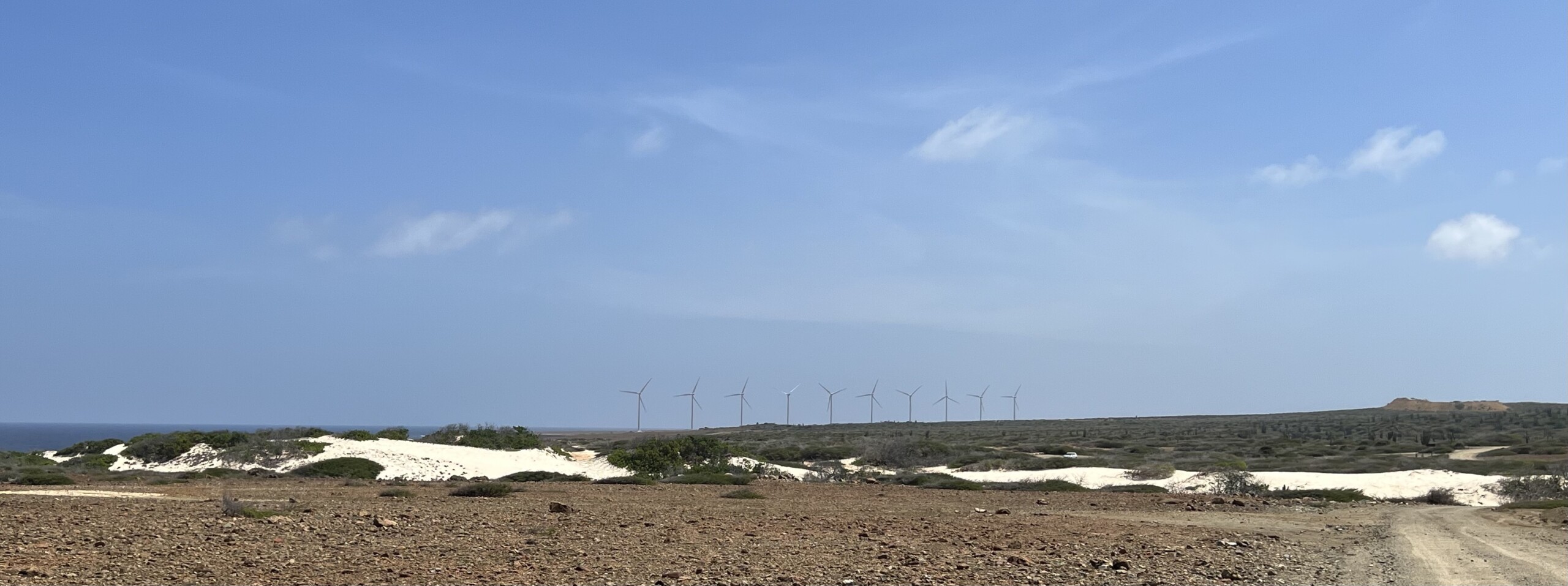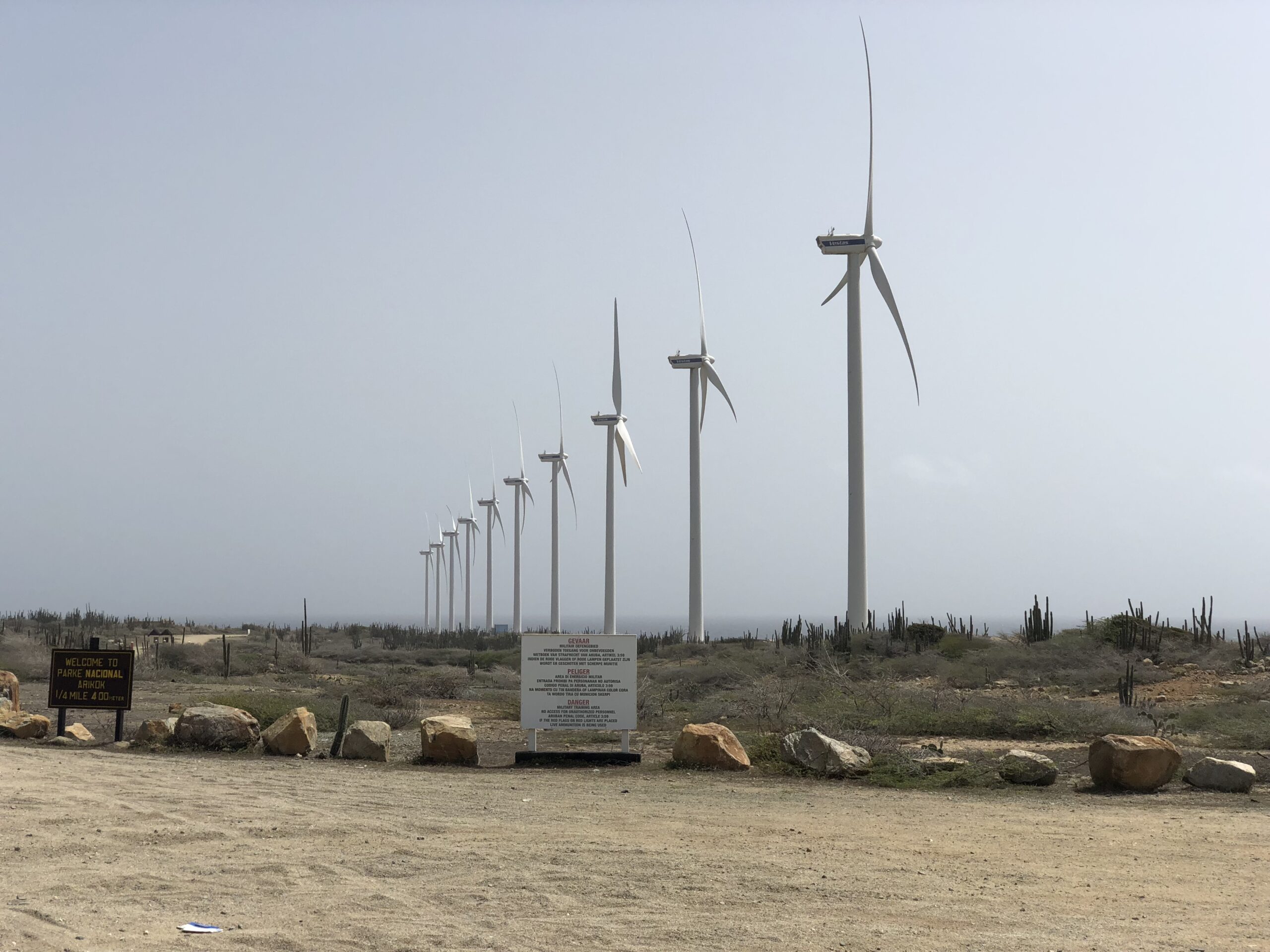 Although Aruba with a size of approximately 180 square kilometers is limited in suitable onshore wind locations, recent offshore wind developments might enable Aruba to profit from the North East Trade winds which are so generous around. The various economic exclusive zones in the Caribbean Sea of which one with approximately 15.000 square kilometers is appointed to Aruba have unlimited potential for harvesting renewable energy through floating offshore windfarms.